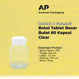Botol Tablet Besar Bulat 60 Kapsul Clear