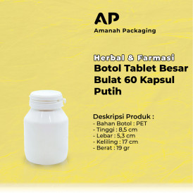 Botol Tablet Besar Bulat 60 Kapsul Putih